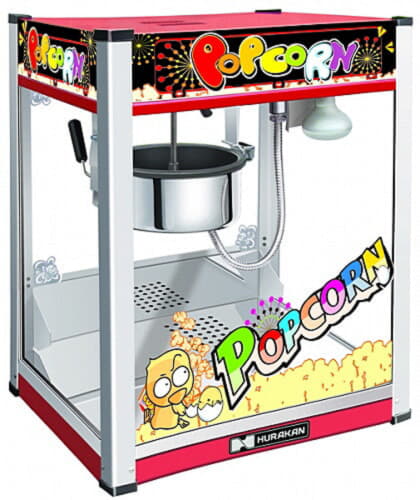 Аппарат для попкорна Hurakan подходит для оснащения кинотеатров, торгово-развлекательных комплексов, уличных точек и предприятий быстрого питания.