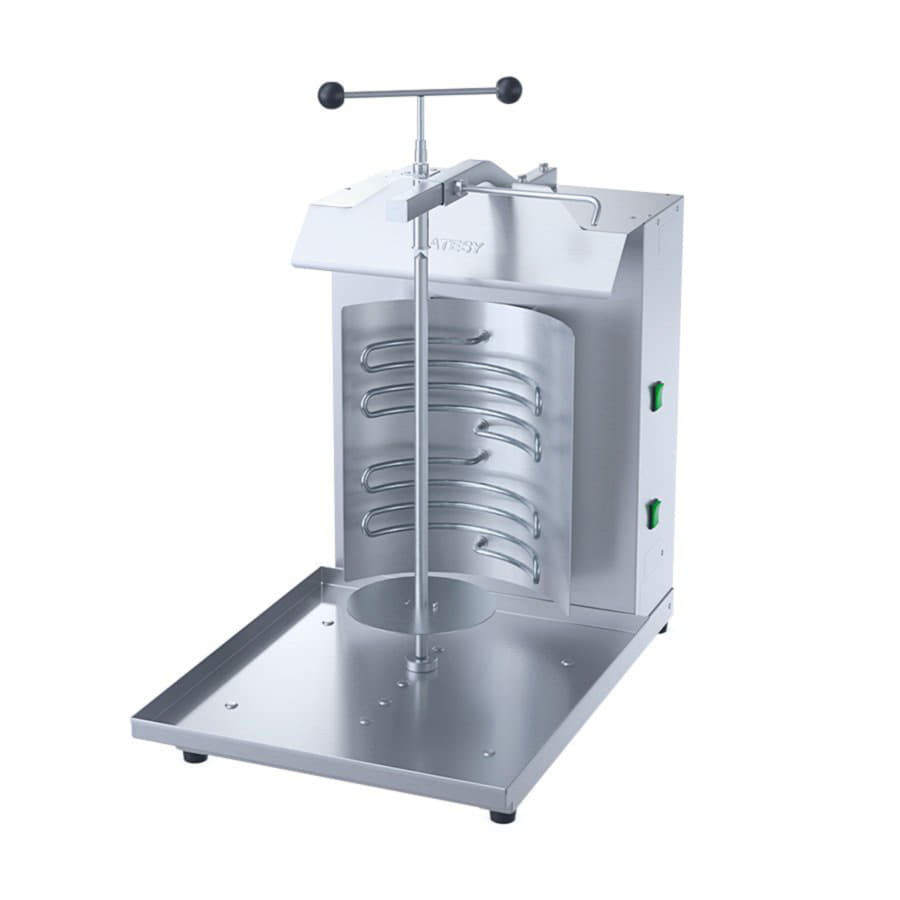 Равномерное приготовление продукта обеспечивается за счет: специальной изогнутой формы ТЭНов; оптимальной скорости вращения ножа; наличия отражателей тепла. Отдельное включение нагрева каждого ТЭНа. Регулировка расстояния между ножом и горелками позволяет подобрать оптимальный режим приготовления продукта. Защитный козырек препятствует перегреву электропривода, увеличивая срок его службы. Усилена нижняя шайба и штанга крепления ножа. В стандартной поставке установка Шаурма оснащена ручным приводом ножа.