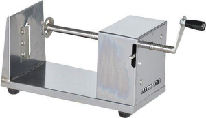 С его помощью вы сможете нарезать картофель в виде спирали, просто вращая рукоятку. При этом шпиндель автоматически подается к вертикальному ножу, что делает процесс максимально удобным. Регулировка толщины нарезки варьируется от 2 до 3 мм, а максимальная длина картофеля, который можно использовать, составляет 16 см.