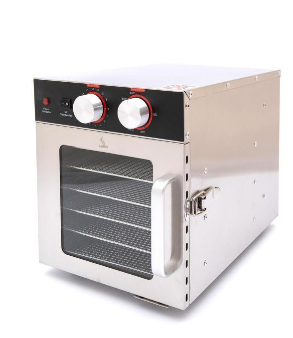 Прибор выполнен из высококачественной нержавеющей стали AISI 201/304, что гарантирует соответствие всем санитарным нормам. В комплект входят шесть стальных решеток размером 25х25 см, которые легко извлекаются и очищаются, а также позволяют регулировать расстояние между ними.