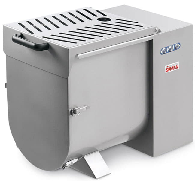 Фаршемешалка SIRMAN IP30 Y14 используется для перемешивания размельченных продуктов с различными добавками, такими как специи, соль, сахар, на производстве колбас, сыра, салатов, гамбургеров, творожных масс. После перемешивания в фаршемешалке фарш становится однородным, добавки равномерно распределяются по всему объему.