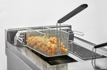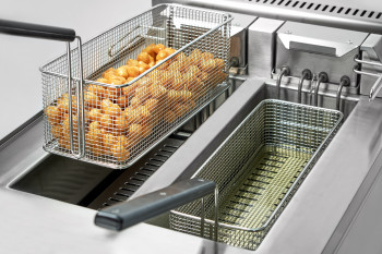 Температурный диапазон регулировки масла в жарочной ванне составляет от +20 до +190 °C, что дает возможность готовить разнообразные блюда с учетом их особенностей. Максимальная загрузка продуктов в каждую корзину не должна превышать 1 кг, а всего можно использовать до 2 кг одновременно.