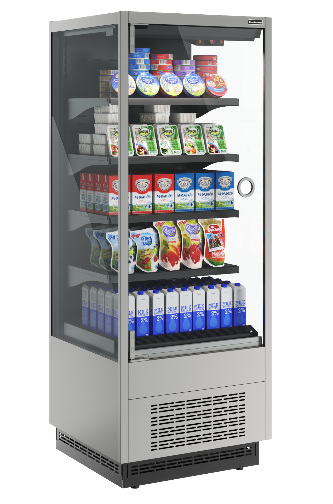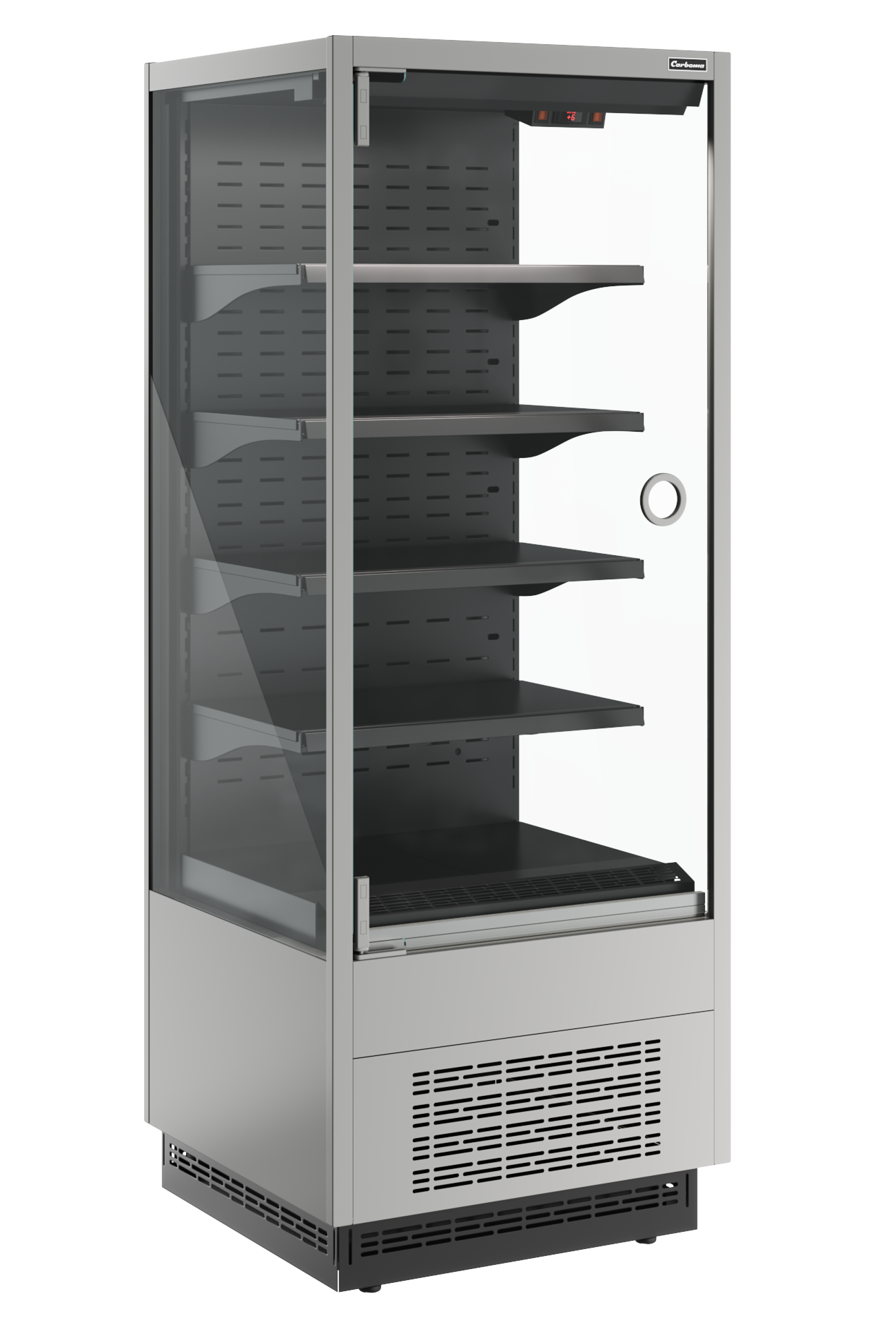 Холодильная горка Carboma FC20-07 VM 0,7-1 LIGHT фронт X0 9006-9005 (версия 2.0) представляет собой высококачественное оборудование, предназначенное для хранения и демонстрации продуктов в условиях закрытых помещений. Изготовленная в России, данная витрина обладает следующими характеристиками: