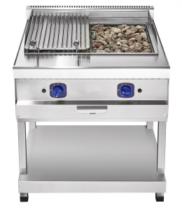 Гриль ГЛК-90П использует принцип приготовления на вулканической лаве, которая равномерно распределяет тепло и впитывает излишки жира. Благодаря мощным газовым горелкам, лавовый камень быстро накапливает тепло и функционирует как раскаленные угли, что избавляет от необходимости постоянного подсыпания угля. При этом стекающий жир, попадая на раскаленные камни, создает ароматный дым, придающий блюдам уникальный вкус, напоминающий барбекю.