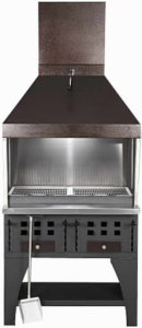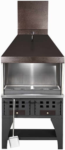 Для регулировки доступа воздуха имеются регулируемые заслонки на корпусе мангала и шиберная заслонка в вытяжном зонте.