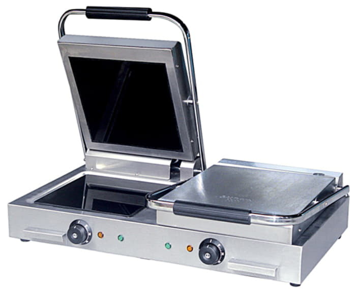 Гриль контактный двухсекционный настольный с четырьмя стеклокерамическими пластинами.