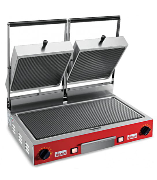 Двойной электрический контактный гриль PD VC RR-RR от итальянской фабрики SIRMAN предназначен для приготовления мяса, рыбы, стейков и гамбургеров.