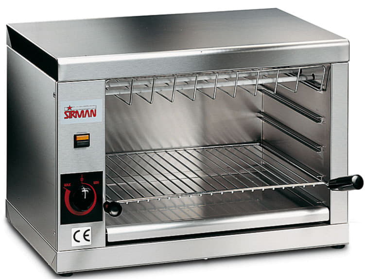 Гриль саламандра SALAMANDRA Basic производства SIRMAN, предназначен специально для приготовления тостов, открытых сэндвичей, жульенов и других блюд. Специфика работы этого гриля заключается в том, что нагревание происходит над продуктом, в результате чего блюдо не поджаривается, а запекается. В данной модели структура рабочей поверхности рифленая. С использованием данного профессионального оборудования можно не только приготовить аппетитные блюда с румяной корочкой, но также поддерживать их в горячем состоянии на протяжение длительного времени. Необходимую для приготовления блюд из различного сырья температуру обеспечивает такой тип нагревательного элемента, как тэн. Общее количество нагревательных элементов в модели - 2. Надежность оборудования обеспечивает материал корпуса - как нержавеющая сталь. Mатериал рабочей поверхности - хромированная сталь.