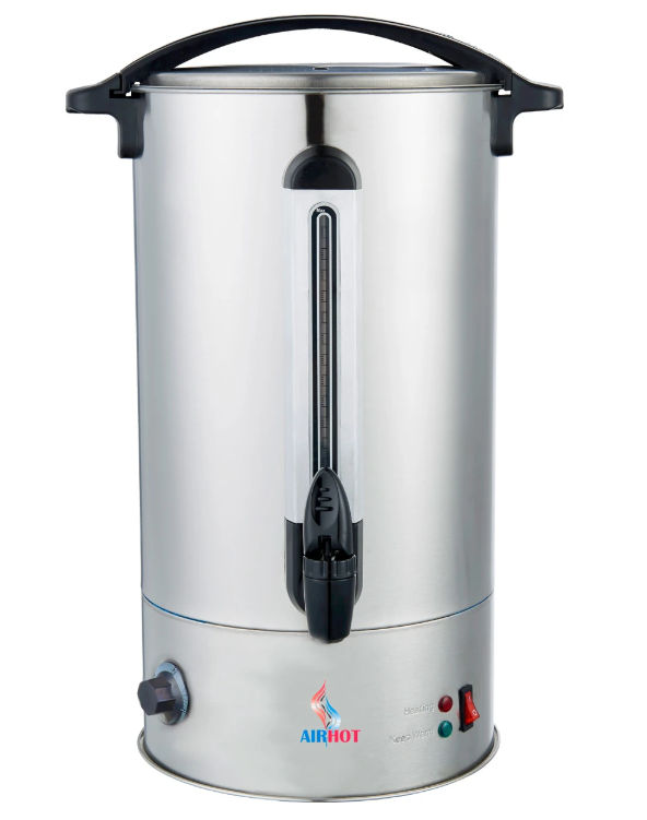Этот термопот выполнен из нержавеющей стали, что соответствует всем санитарным и гигиеническим стандартам. Он оснащен аварийным термостатом, а также световыми индикаторами, которые сигнализируют о процессе нагрева и поддержании температуры. Механический регулятор позволяет устанавливать температуру в диапазоне от +30 до +110ºС.