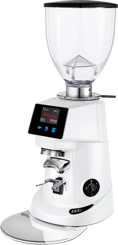 кольца, плоские жернова диаметром 64 мм, скорость вращения жерновов: 1350 об/мин. Оснащена сенсорным дисплеем, системой порционной дозировки, счетчиком порций день/неделя/всего. Цвет корпуса: белый.