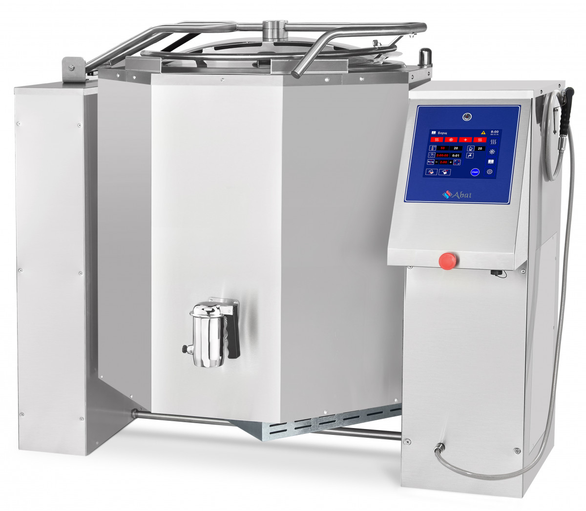 Котел пищеварочный Abat КПЭМ-350-ОМП с автоматическим опрокидыванием и сливным краном – это высококачественное электрическое оборудование, предназначенное для приготовления разнообразных блюд, включая бульоны, соусы, десерты, а также вторые и третьи блюда. Устройство позволяет готовить продукты как с перемешиванием, так и без него.