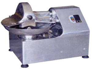 Продукт загружается в чашу из нержавеющей стали, вращающуюся в горизонтальной плоскости перпендикулярно плоскости вращения 2-х лопастного серповидного ножа.