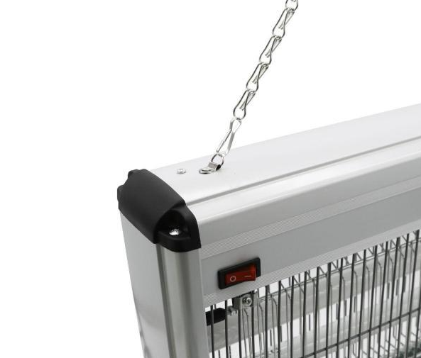 Принцип действия этой инсектицидной лампы основан на использовании ультрафиолетового света, который привлекает насекомых, не причиняя вреда человеку. Попадая в ловушку, насекомые касаются металлической решетки, находящейся под электрическим током, что приводит к их уничтожению. Падение мертвых насекомых происходит в специальный поддон, который легко извлекается для очистки. Лампа может быть подвешена с помощью цепи, входящей в комплект, и подходит для круглосуточного использования, включая дневное время.