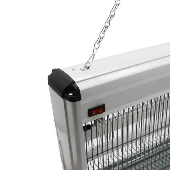 Корпус устройства выполнен из алюминия, а решетки и другие элементы изготовлены из нержавеющей стали, что соответствует стандартам для оборудования в пищевой промышленности. Поддон для сбора насекомых легко выдвигается с передней панели, что делает процесс очистки простым и быстрым. Данное оборудование полностью соответствует санитарным нормам и требованиям.