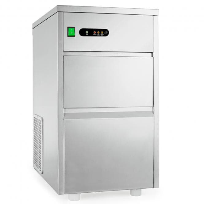 Льдогенератор кускового льда (пальчики), воздушное охлаждение, производительность 20 кг/сутки, встроенный бункер для льда вместимостью 5 кг, размеры пальчика (диаметр х высота) 27х42 мм, материал корпуса - нерж.сталь