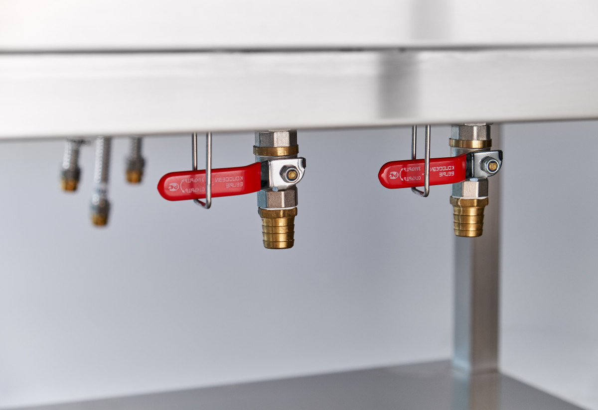 Корпус макароноварки выполнен из аустенитной нержавеющей стали AISI 304 толщиной 1 мм, что гарантирует долговечность и устойчивость к коррозии. Задняя панель изготовлена из крашеного оцинкованного металла, также толщиной 1 мм. Удобство в использовании обеспечивают два крана для залива и слива воды, а также регулируемые по высоте ножки, позволяющие адаптировать устройство под любые условия.