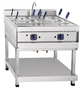 Макароноварка работает на газе и обладает мощностью 17,2 кВт, что обеспечивает быстрое и качественное приготовление. Время разогрева воды до кипения составляет всего 30 минут, что значительно ускоряет процесс готовки. Устройство потребляет 1,820 м³ природного газа или 1,356 кг сжиженного газа в час, что делает его экономичным выбором для вашего бизнеса.