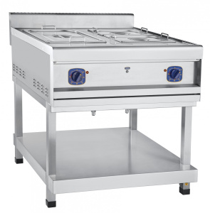 Данная модель оснащена двумя ваннами для воды, что обеспечивает удобство в использовании. Терморегулятор позволяет точно регулировать температуру воды в диапазоне от +30°C до +85°C, что гарантирует идеальные условия для хранения и разогрева пищи. Гастроемкости с горячей функцией легко устанавливаются в специальные гнезда ванны, а слив воды осуществляется через удобный сливной кран. Подставка выполнена из нержавеющей стали, что обеспечивает долговечность и легкость в уходе.