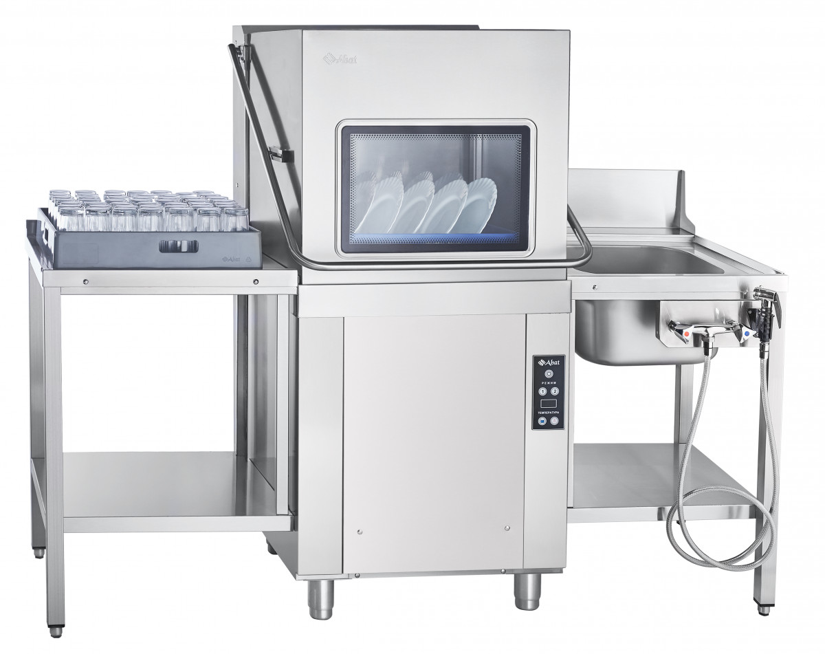 Купольная посудомоечная машина совместима с предмоечными и раздаточными столами, что позволяет оптимизировать рабочий процесс. В стандартную комплектацию входят: