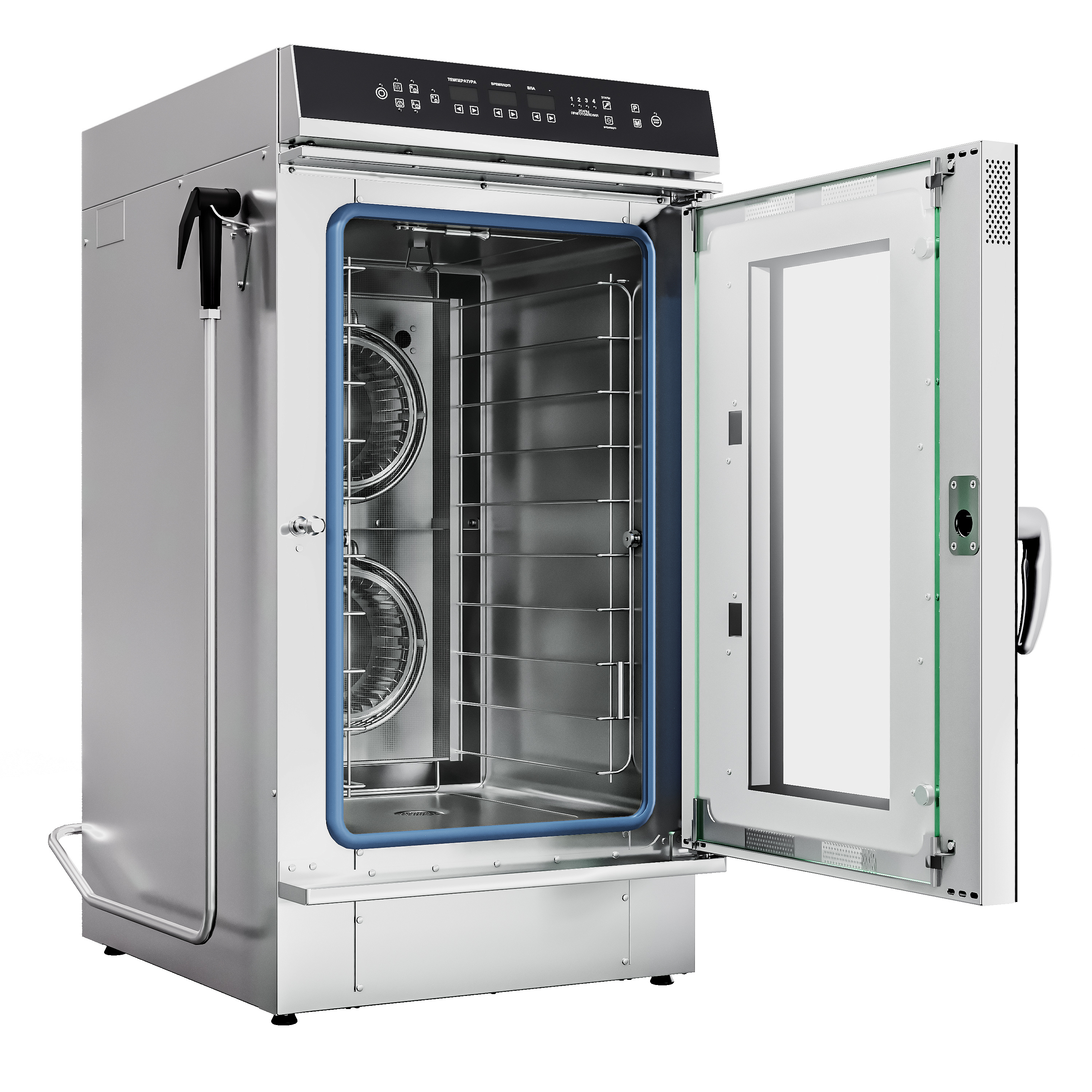 Устройство оснащено современным электронным управлением, что обеспечивает простоту в эксплуатации. Встроенный парогенератор гарантирует эффективное пароувлажнение, а автоматическая система мойки с использованием таблетированных моющих средств Abat значительно упрощает уход за оборудованием. В комплект также входит ручной душ, что добавляет удобства в процессе обслуживания.
