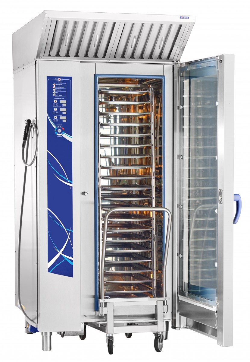Устройство работает на основе бойлерного типа парообразования, что гарантирует надежное и эффективное приготовление. В комплекте с пароконвектоматом идет тележка-шпилька ТП 20-1/1, которая вмещает 20 гастроемкостей формата GN 1/1. Благодаря продольной загрузке, вы можете использовать гастроемкости различных размеров, включая GN 1/2 и GN 1/3.