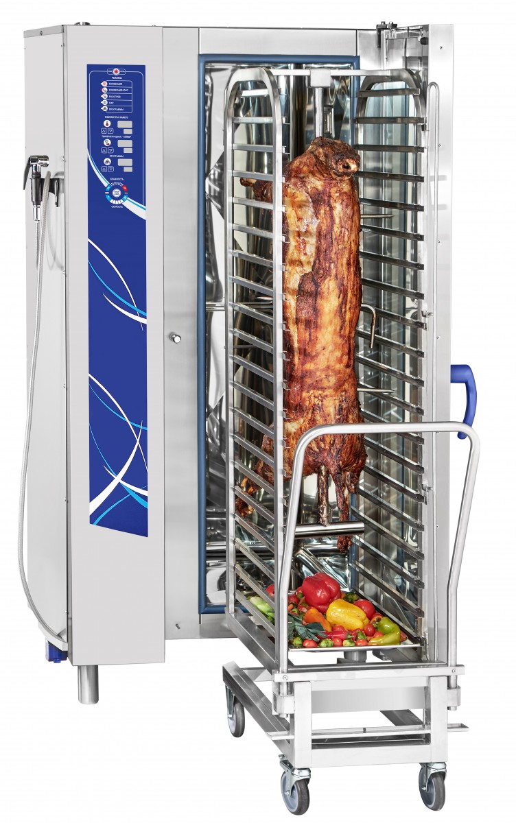 Управление пароконвектоматом осуществляется с помощью удобной электронной панели на русском языке, что делает процесс эксплуатации интуитивно понятным. Встроенный парогенератор гарантирует надежное образование пара, а продольная загрузка позволяет использовать гастроемкости различных размеров, включая GN 1/2 и GN 1/3.