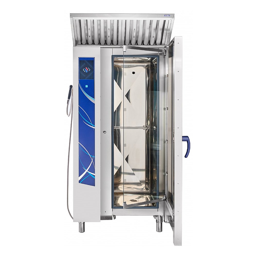 Данный пароконвектомат оснащен бойлерным парообразователем, что обеспечивает эффективное увлажнение. Он поддерживает продольную загрузку, что позволяет использовать гастроемкости как размера GN 1/2, так и GN 1/3. Удобная сенсорная панель управления с TFT-экраном делает процесс эксплуатации интуитивно понятным.