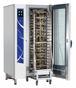 Управление устройством осуществляется с помощью современного электронного интерфейса, который включает удобную сенсорную панель с TFT-экраном. ПКА 20-1/1ПП2 предлагает 120 предустановленных программ, а также возможность создания и сохранения до 360 индивидуальных рецептов, защищенных паролем. Каждая программа может включать до 4 этапов, что позволяет точно настраивать процесс приготовления, включая время и этапы ожидания.