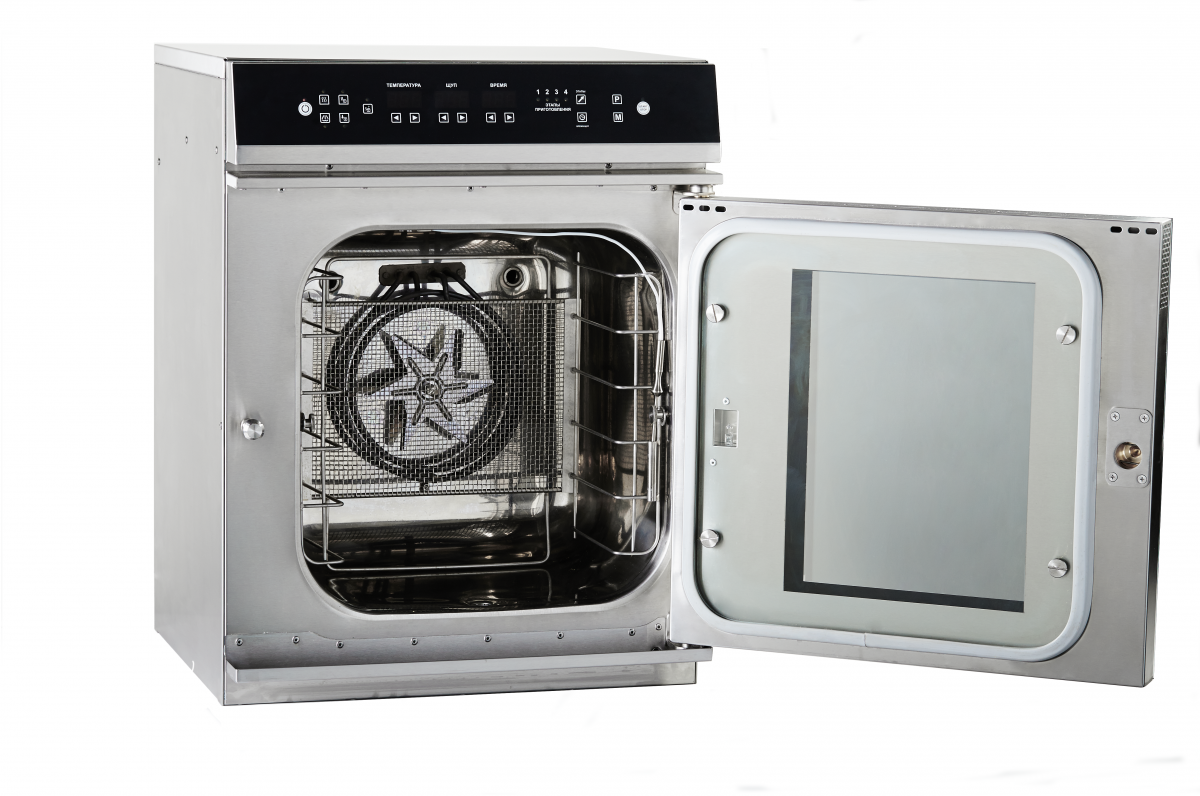 Электронная панель управления с русскоязычным интерфейсом и мембранной клавиатурой делает эксплуатацию устройства простой и интуитивно понятной. Внутренняя камера с закругленными углами облегчает уход за пароконвектоматом, а система защиты от влаги IPX5 позволяет мыть его под струей воды. Вентилируемая дверца с двойным термостойким остеклением предотвращает риск ожогов, а двухходовой механизм открывания обеспечивает безопасность при работе с горячим паром.