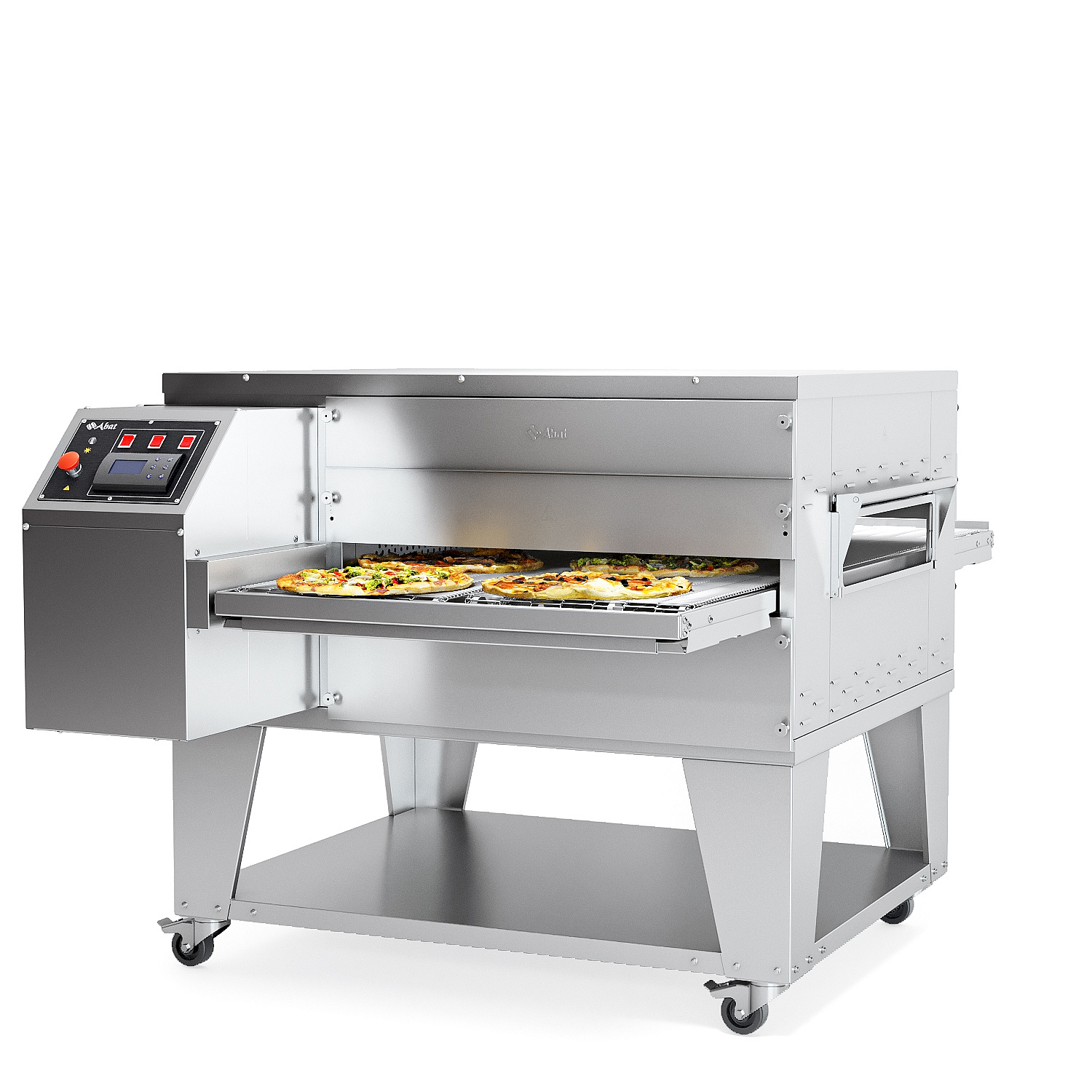 Внутренние размеры камеры составляют 1014х853 мм, а два конвейера размером 1787х402 мм обеспечивают эффективную загрузку и равномерное выпекание. Производительность одного уровня печи достигает 86 пицц в час при времени выпекания 3,5 минуты.