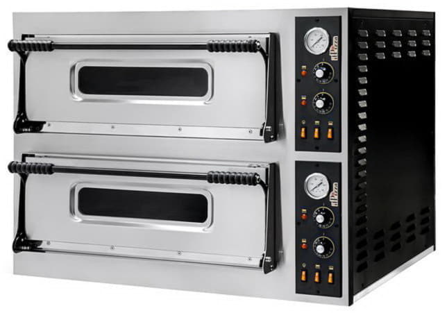 печь имеет 2 яруса вместимостью до 8 пицц диаметром 32 см