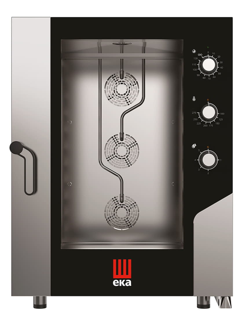 Оптимальное сочетание дизайна и качества сборки делает TECNOEKA MKF 1064 S не только привлекательной внешне, но и максимально удобной в плане обслуживания: небольшие габариты, низкие энергозатраты, удобная электромеханическая панель управления позволяют облегчить работу повара и обслуживающего персонала, а благодаря системе непрямого увлажнения эта печь позволит вам сделать все ваши продукты более вкусными, аппетитными и хрустящими.