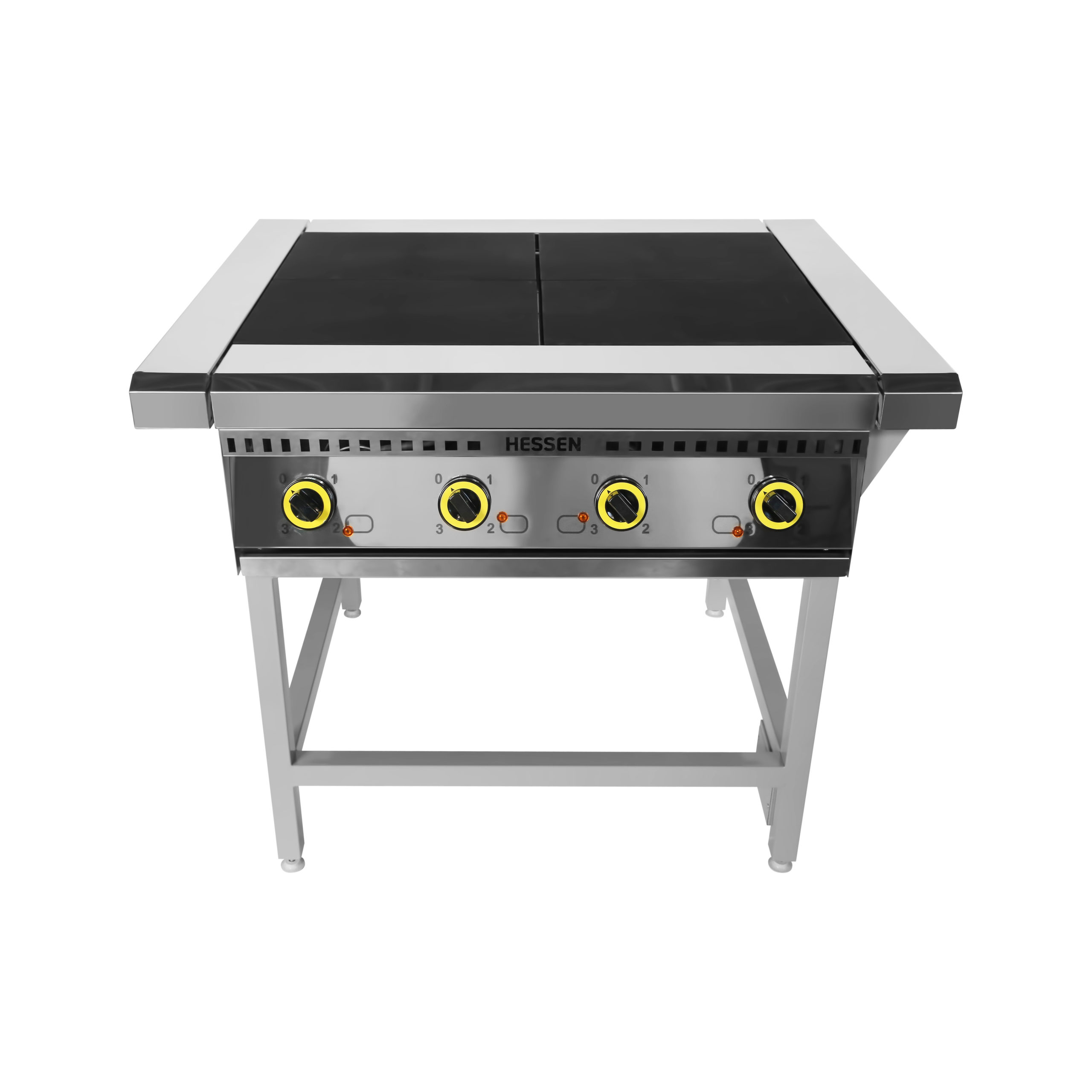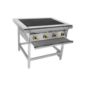 Конфорки имеют размеры 417х295 мм, а их рабочая температура достигает 480°C, что позволяет быстро и эффективно готовить. Время разогрева до максимальной температуры составляет всего 30 минут. Плита не оснащена духовым шкафом, что делает её идеальной для приготовления первых, вторых и третьих блюд в специализированной посуде.