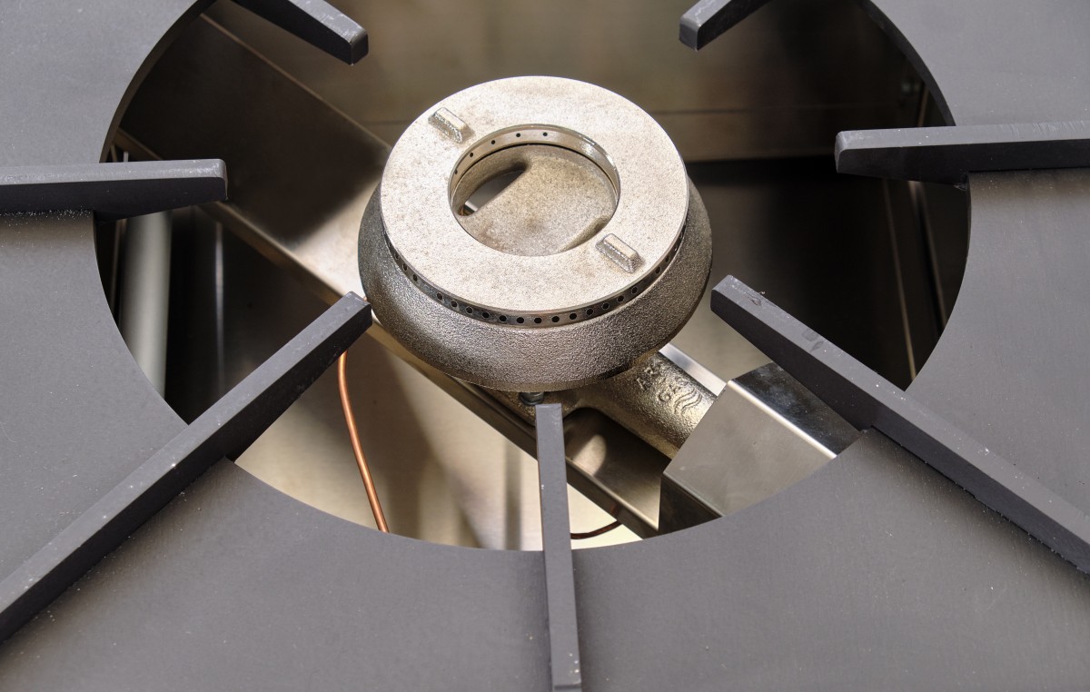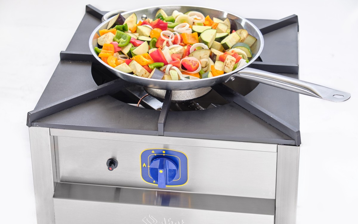 Компактные размеры устройства (506 мм в ширину, 528 мм в глубину и 505 мм в высоту) позволяют легко интегрировать его в любое кухонное пространство. Изготовленная из нержавеющей стали AISI 202, плита отличается прочностью и долговечностью. Она оснащена пьезорозжигом и системой газ-контроля для повышения безопасности в процессе эксплуатации. Регулируемые по высоте ножки обеспечивают удобство установки на неровных поверхностях.