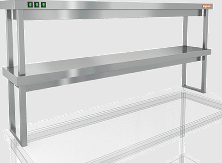 Габариты полки составляют 1835 мм в длину, 300 мм в глубину и 800 мм в высоту, что делает её удобной для размещения на кухне или в ресторане. Верхний уровень предназначен для подогрева, в то время как нижний уровень остается нейтральным, что позволяет эффективно организовать пространство для сервировки.