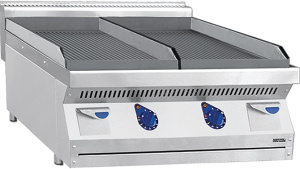 Для предотвращения разбрызгивания жира по периметру чугунных зон нагрева предусмотрен бортик. Также в конструкции имеются два лотка для сбора излишков масла и жира, что упрощает процесс уборки. Воздуховод, встроенный в аппарат, эффективно отводит лишнее тепло, предотвращая перегрев устройства.