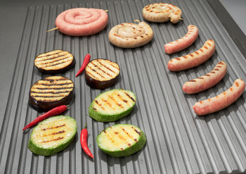 На лицевой панели предусмотрены специальные лотки для сбора масла, что упрощает процесс уборки. В комплект входят съемные форсунки для сжиженного газа, а также система пьезорозжига для легкого запуска.