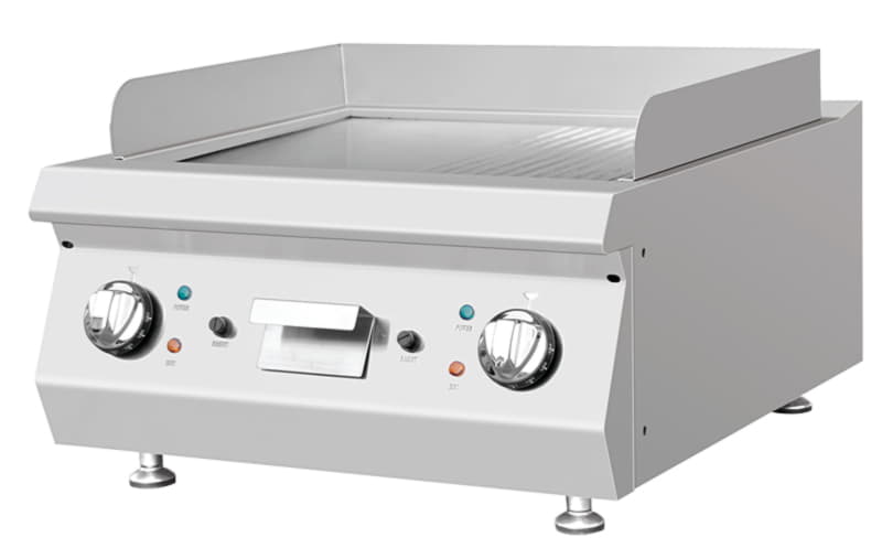 Гриль-сковорода непосредственной жарки с наполовину плоской, наполовину ребристой поверхностью размером 41*54 см из сплава чугуна FE510D толщиной 16 мм - функциональный элемент линии 650.