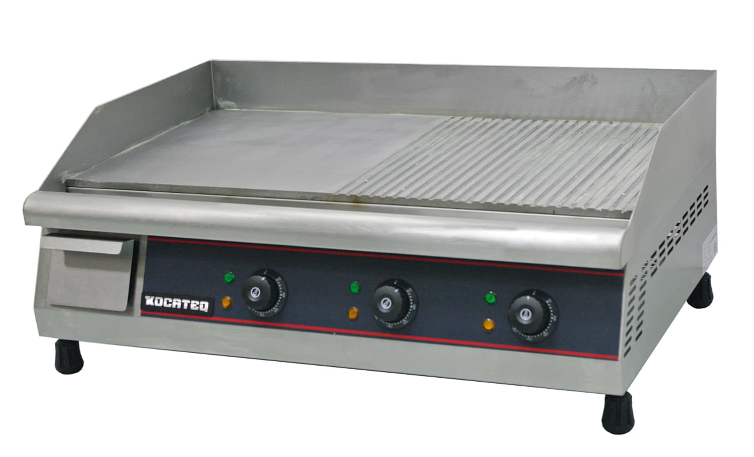Гриль-сковорода непосредственной жарки с комбинированной поверхностью: 1\2 плоская, 1\2 ребристая.