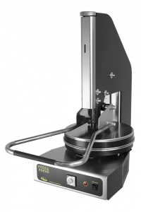 Специальная форма рабочих поверхностей, механическое управление, 2 подогреваемые поверхности из полированной н/стали, регулировка толщины продукта 1-8 мм, диаметр готового продукта до 350 мм, полностью из н/стали, 3,0 кВт, г.нетто 350х600х900мм; 65кг; г.брутто:450х790х1100; 75кг