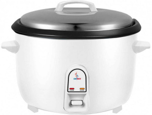 Модель включает съемную чашу с мерной шкалой, которая контролируется термостатом. На панели управления расположены индикаторы «COOK» и «WARM», а в комплект входят совок для риса и мерный стакан.
