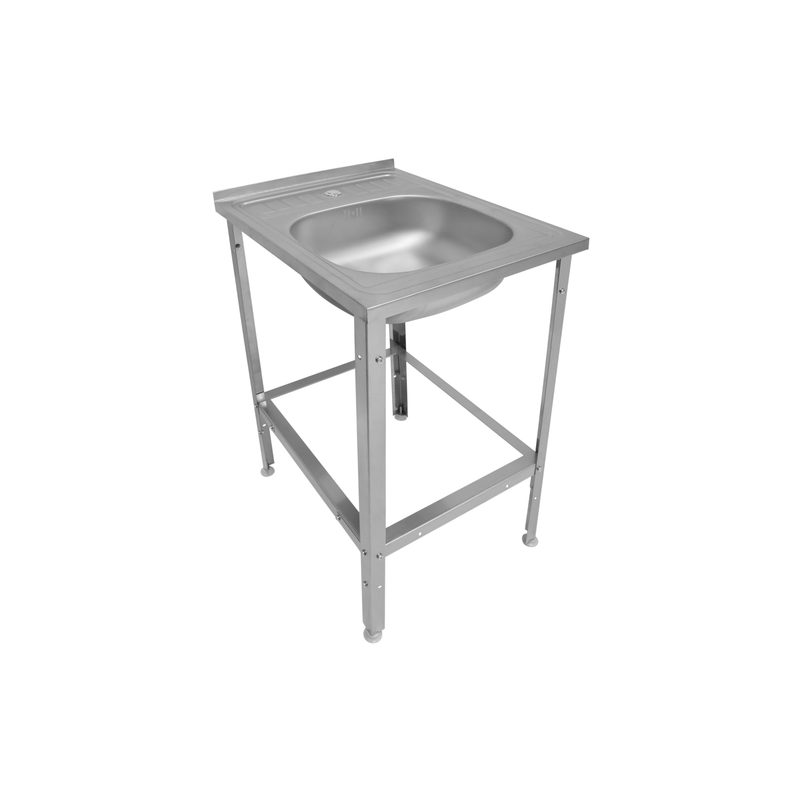 Изготавливается из высококачественной пищевой нержавеющей стали, что гарантирует долговечность и устойчивость к коррозии. Каркас выполнен из крашеной стали, а его стойки имеют форму уголка размером 35х35 мм. Ножки рукомойника регулируются по высоте, что позволяет легко компенсировать неровности пола при установке.