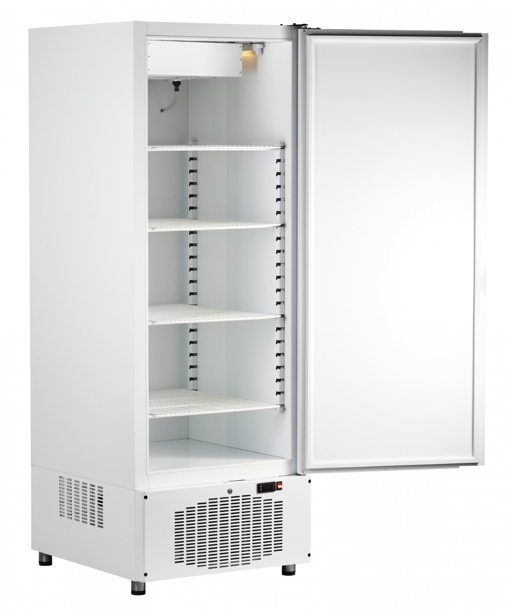 Корпус устройства выполнен из оцинкованной стали с полимерным покрытием, что гарантирует долговечность и защиту от коррозии. Толщина стенок составляет 50 мм, что способствует отличной теплоизоляции. Внутреннее пространство шкафа поддерживает температурный режим от 0 до +5 °C, что идеально подходит для хранения скоропортящихся товаров. Устройство может функционировать при температуре окружающей среды до +43 °C и относительной влажности от 40 до 70%.