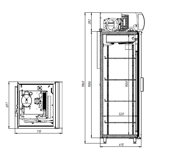 Шкаф имеет алюминиевую раму дверей и оснащен теплоотражающим стеклопакетом, что способствует эффективному сохранению температуры внутри. Внутреннее пространство освещается вертикальной светодиодной подсветкой, а также имеется подсветка канапе, что делает его использование более удобным. Дверь можно установить так, чтобы она открывалась в нужную сторону, что добавляет гибкости в размещении оборудования.