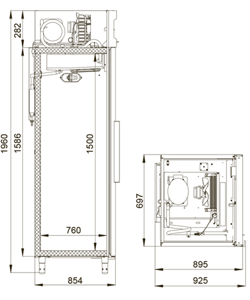 - Габариты: Ширина 697 мм, Глубина 925 мм, Высота 1960 мм