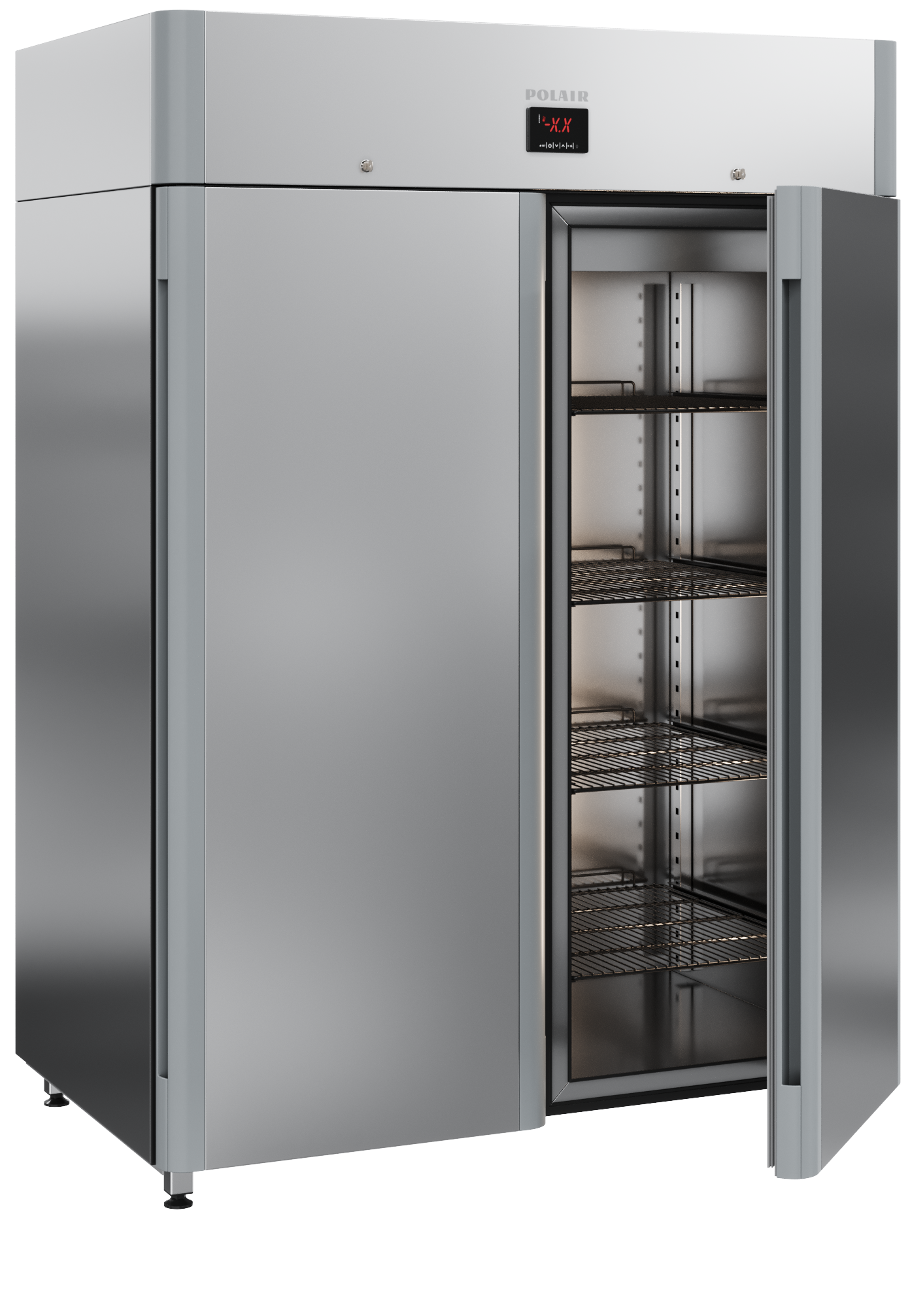 Шкаф изготовлен из высококачественной пищевой нержавеющей стали как снаружи, так и внутри, что обеспечивает долговечность и легкость в уходе. Инновационная конструкция дверей с интегрированной ручкой из алюминия гарантирует удобство в использовании и эстетичный внешний вид. Верхняя фронтальная панель с боковыми алюминиевыми профилями не только придает шкафу стильный вид, но и усиливает его конструкцию.