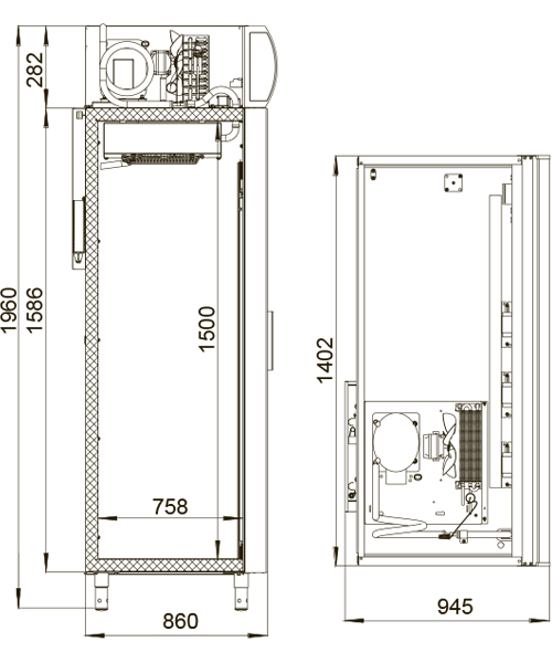 Шкаф изготовлен из оцинкованной стали с полимерным покрытием, что обеспечивает долговечность и защиту от коррозии. Стенки имеют толщину 43 мм, что способствует отличной теплоизоляции. Стеклопакеты, установленные в алюминиевых рамах, обеспечивают высокую теплоизоляцию и эстетичный вид.