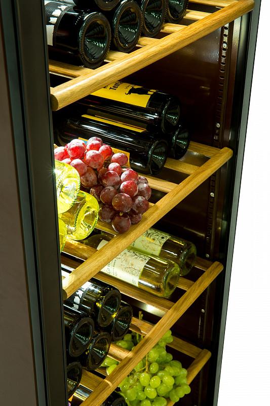 Полки выполнены из натурального дуба, а внутренняя подсветка с использованием LED-технологий создает эффектный вид. Тонированное стекло защищает от ультрафиолетового и инфракрасного излучения, а механический замок обеспечивает безопасность хранения ваших премиальных напитков.