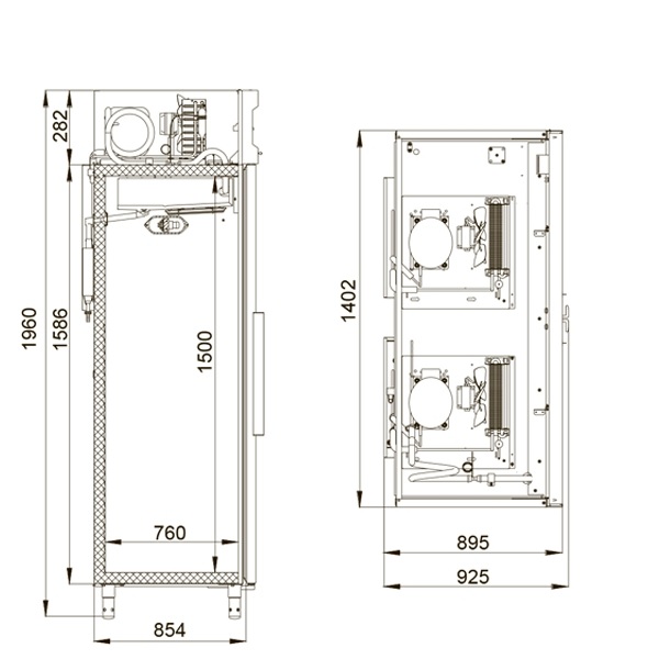 Система X-Cool обеспечивает эффективное охлаждение даже при высоких внешних температурах, а X-Strong гарантирует надежность и прочность конструкции, что делает шкаф идеальным для интенсивного использования. Потребляемая мощность составляет 0,9 кВт, а расход электроэнергии в сутки не превышает 14,5 кВт/ч.