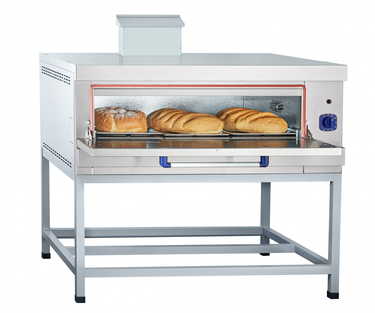 Шкаф имеет дверцу из нержавеющей стали, съемный дымоход и систему пьезорозжига, что делает его эксплуатацию удобной и безопасной. Газ-контроль обеспечивает надежную работу устройства, а плавная регулировка температуры в диапазоне от +100 до +340 °C позволяет точно настраивать режимы выпечки. Время разогрева до 340 °C составляет всего 30 минут.